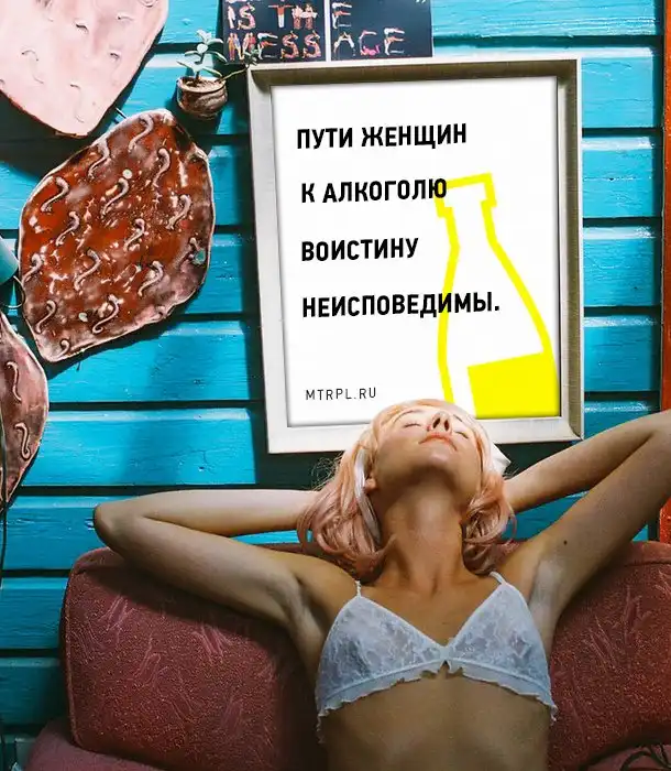 Все эти реплики, от «Не пей вина, Гертруда» до «Выпила водку — береги пилотку», не что иное, как животный страх остаться с ней один на один. И чем смелее выпившая женщина, тем выше градус мужского презрения, которое есть ужас.