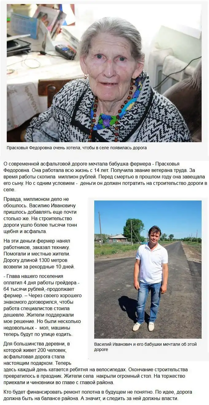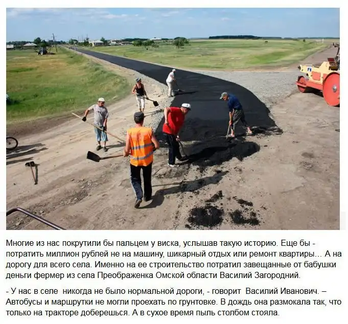 Действительно необычная история одного омского фермера, который потратил целое состояние, доставшееся ему по наследству, на строительство дороги в своем селе.