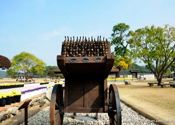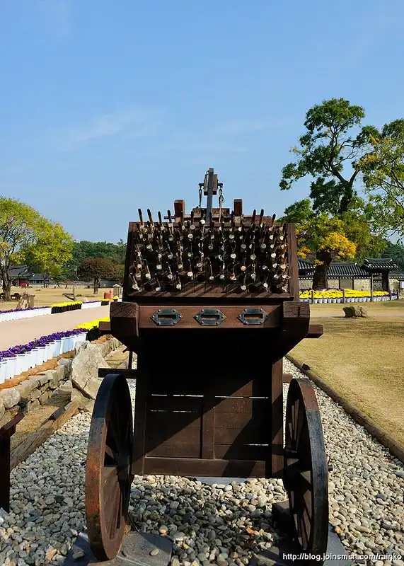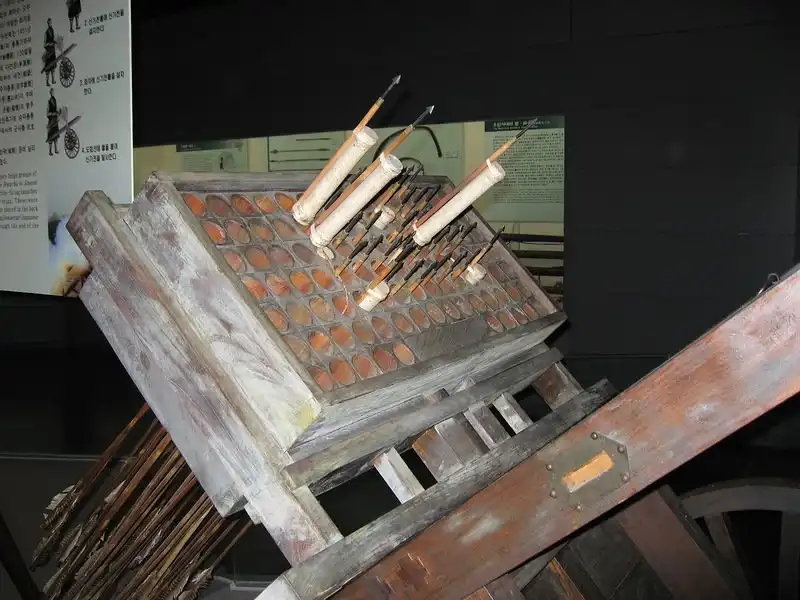 Корейский фильм The Divine Weapon ( 신기전 ) (2008) , залп из девайса можно увидеть на 1 мин 33 сек :