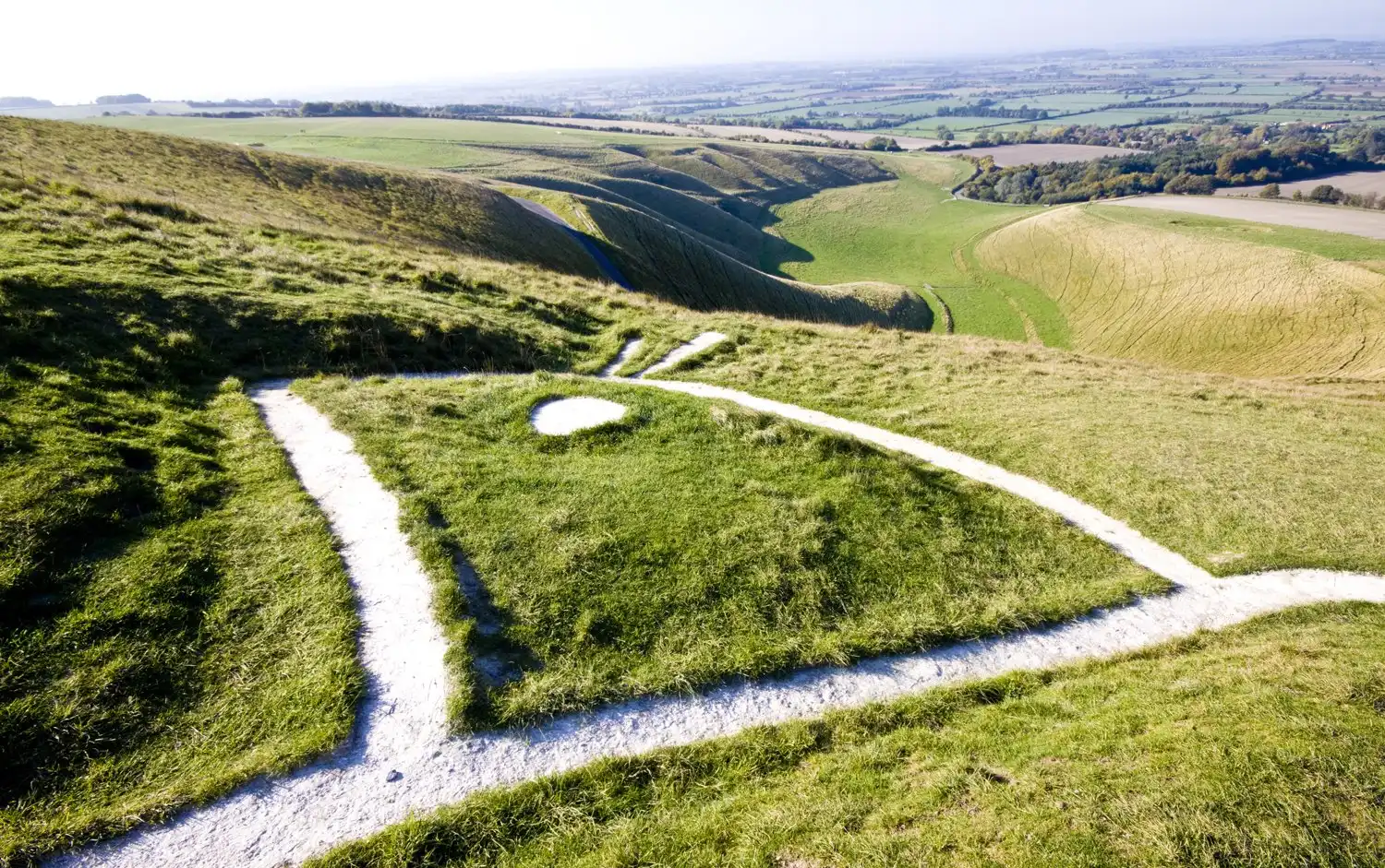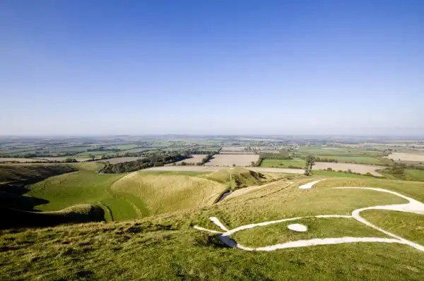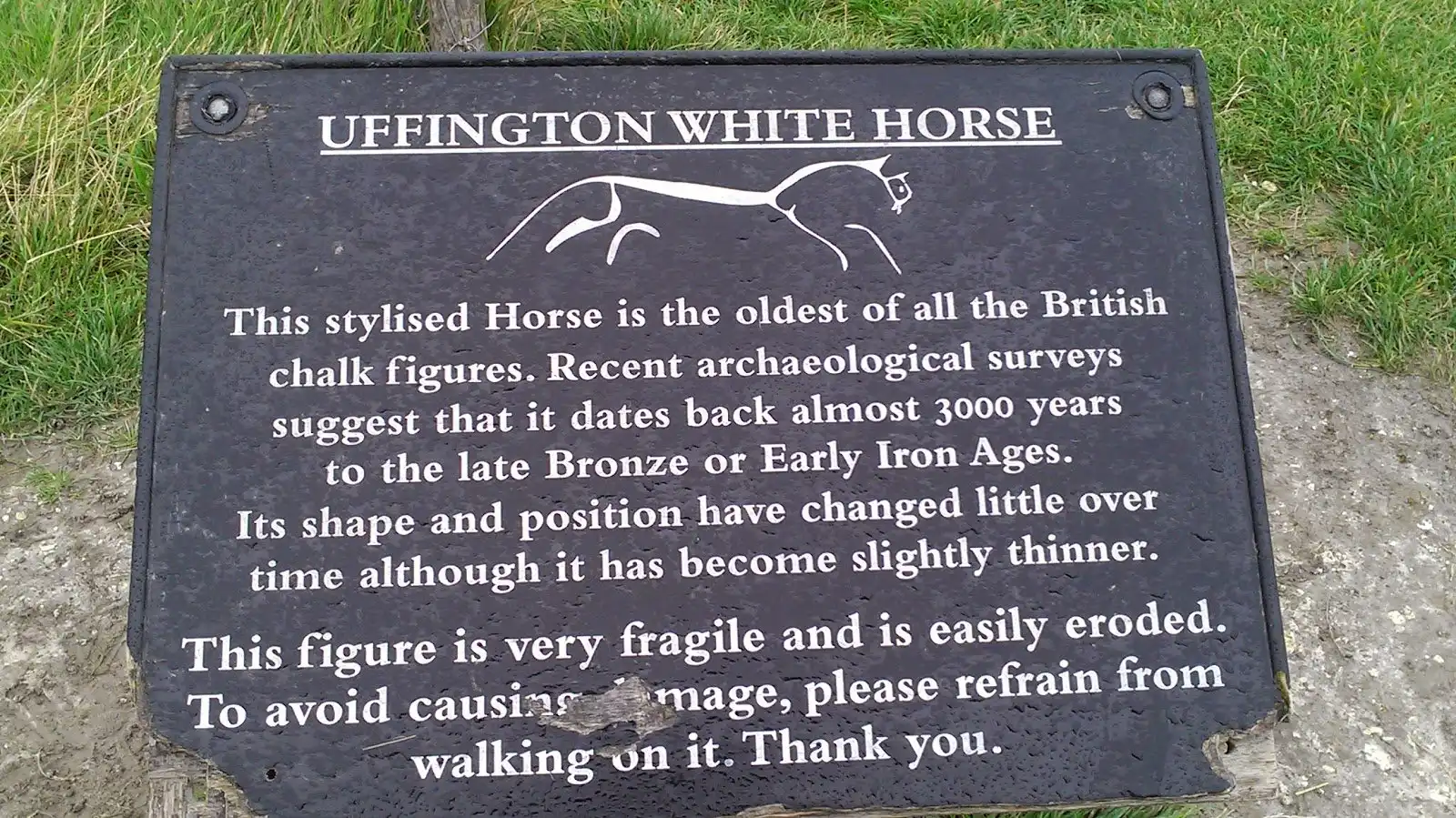 В 17 км. от небольшого городка Уффингтон находится одно из самых знаменитых наскальных изображений — огромная белая лошадь (Uffington White Horse). Она находится на самой вершине горы, а размеры её потрясают воображение — длина от хвоста до головы равна 112 метрам! Рисунок сделан довольно оригинальным способом: дело в том, что слой почвы (неглубокий) здесь лежит на меловой «подушке»; кто-то около 2.5 т. лет назад срезал с травой дерн, обнажив меловой слой.