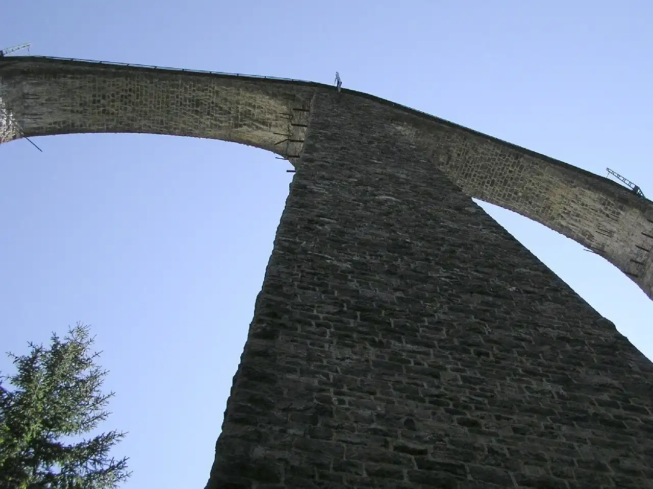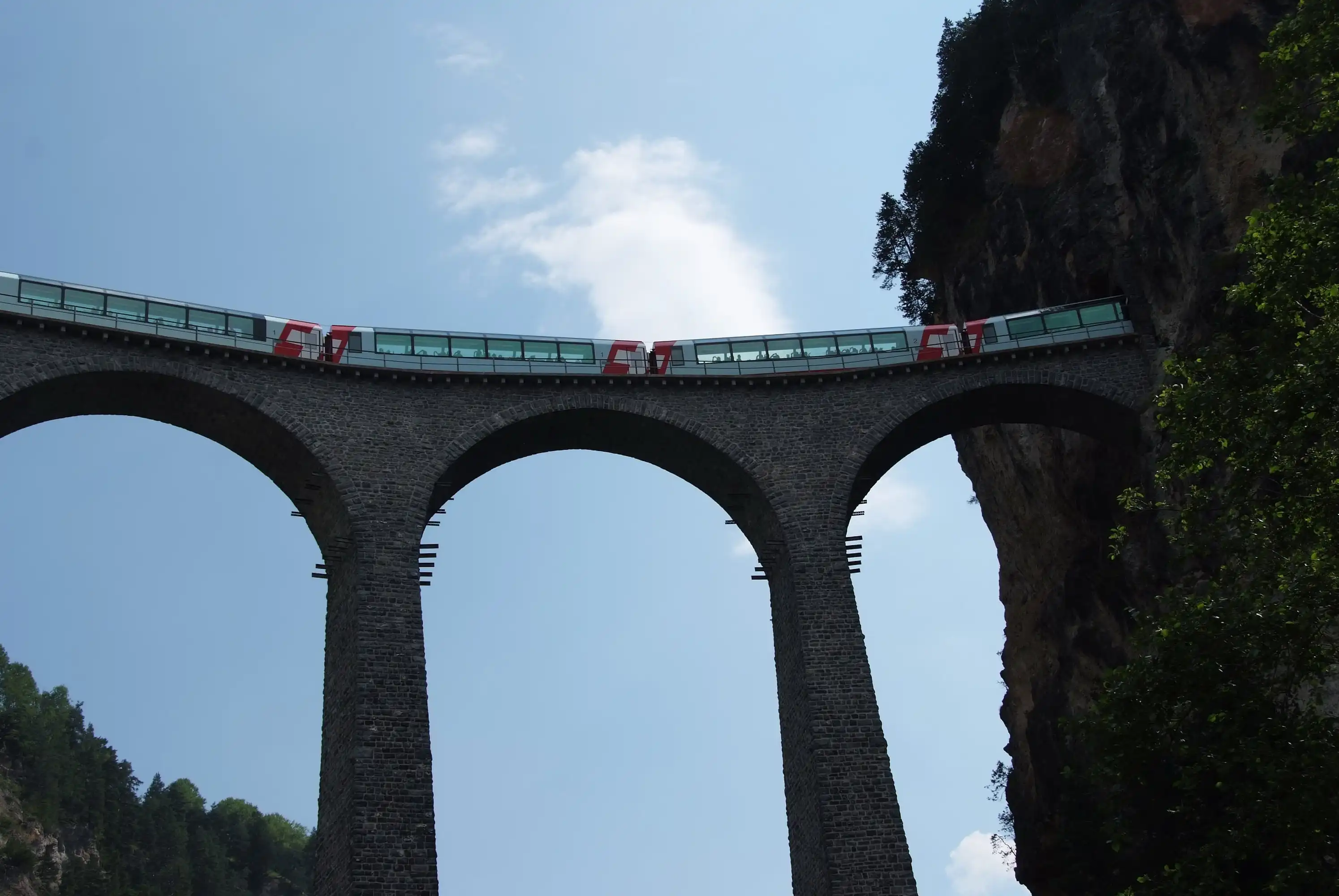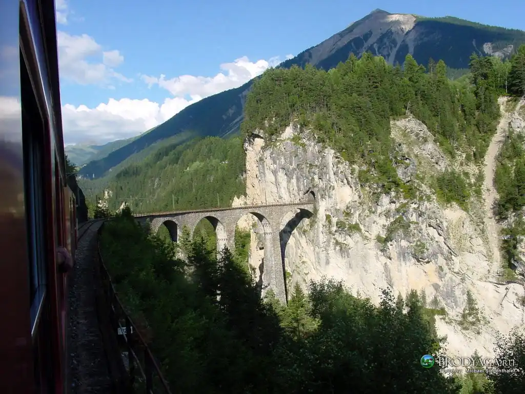 В кантоне Граубюнден (Швейцария) через реку Ландвассер человеческим разумом перекинута дуга железнодорожного моста высотою 65 и длинною 136метров. Этот мост состоит из шести арок длиной 20метров и имеет одну железнодорожную колею. Упираясь одним концом в тоннель Ландвассер, мост фактически является его продолжением.