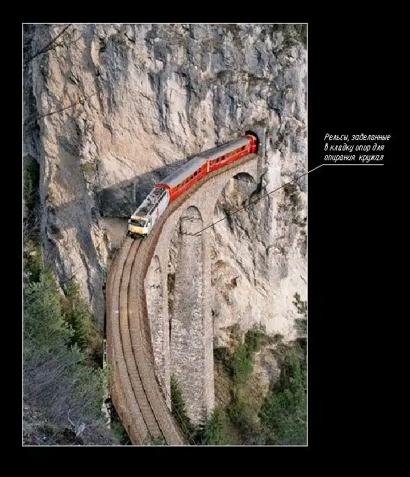 Швейцарцы – мастера в строительстве железных дорог. Нужно быть достаточно изобретательным, чтобы суметь преодолеть разницу горных высот. Мощности локомотива, как правило, не хватает поднять состав по прямой на крутой склон. Он сможет преодолеть этот склон, поднимаясь по изогнутой или круговой ветке. Так, например, на отрезке пути через перевал Сен-Готард для обеспечения безопасного движения поездам наряду с прямолинейным тоннелем был построен еще круговой.