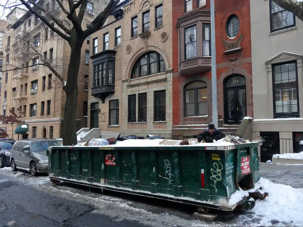 Расскажу вам удивительную историю, свидетелем которой я сегодня стал. Да что там свидетелем - участвовал непосредственно. Итак Нью-Йорк, Манхеттен, Верхний Ист-Сайд (один из самых дорогих и престижных районов города). Один мой знакомый, живущий неподалеку, решает утром сходить в магазин, чтобы купить молока и хлеба. Выходит, значит, из своего многоквартирного дома, идет, и через несколько кварталов видит мусорный контейнер, одиноко стоящий у одного из дорогих особняков. Он бы и прошел мимо, как сделали это тысячи других людей, если бы не одно но. Контейнер открыт (обычно их закрывают брезентом или пленкой), а сверху, вперемешку с мусорными пакетами и снегом, лежат книги. Много книг. И тут он решает в них покопаться.