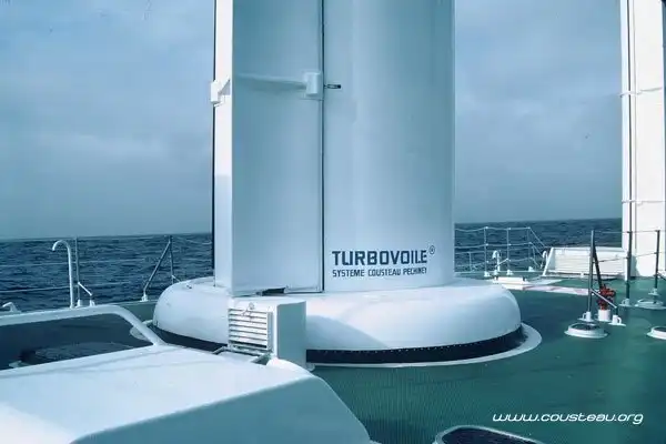 Собственно, впервые Кусто испытал прототип турбопаруса на катамаране «Ветряная мельница» (Moulin à Vent) в 1981 году. Самым крупным успешным плаванием катамарана было путешествие из Танжера (Марокко) в Нью-Йорк под присмотром более крупного корабля экспедиции.