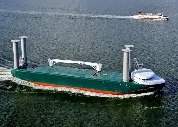 Крупнейший в мире производитель ветряных силовых установок «Enercon» 2 августа 2010 спустил на воду на судоверфи Линденау в Киле 130-метровое роторное судно шириной 22 м, которое позднее было названо «E-Ship 1». Потом оно успешно было испытано в Северном и Средиземном морях, и в настоящее время перевозит ветряные генераторы из Германии, где их производят, в другие страны Европы. Оно развивает скорость в 17 узлов (32 км/час), одновременно перевозит более 9 тыс. тонн груза, его экипаж – 15 человек.