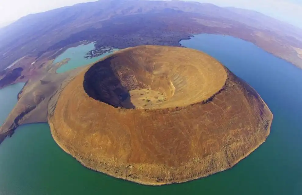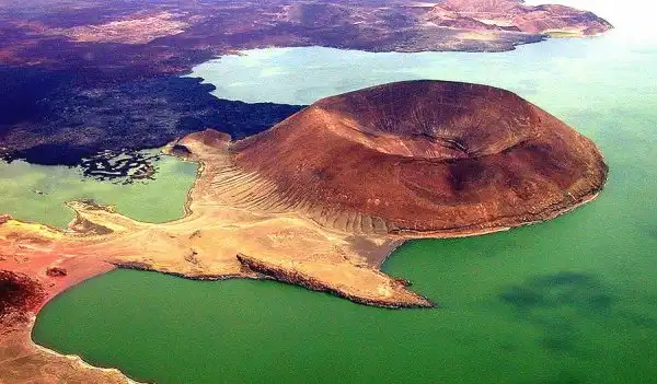 Кратер Набийотум в озере Туркана, расположенный в пределах Великой Рифтовой долины, Кения.