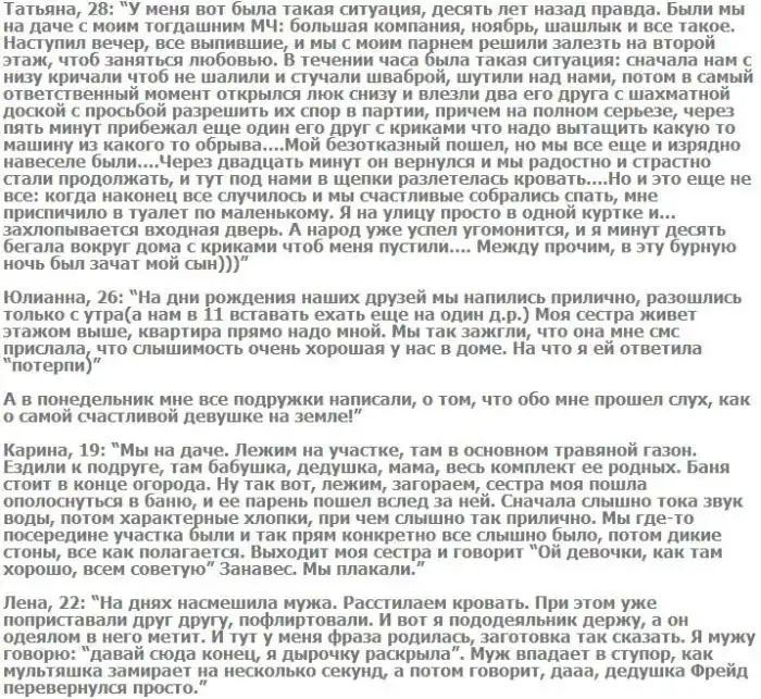 Забавные и смешные рассказы о курьезах в сексе, которыми девушки делятся на женских форумах.