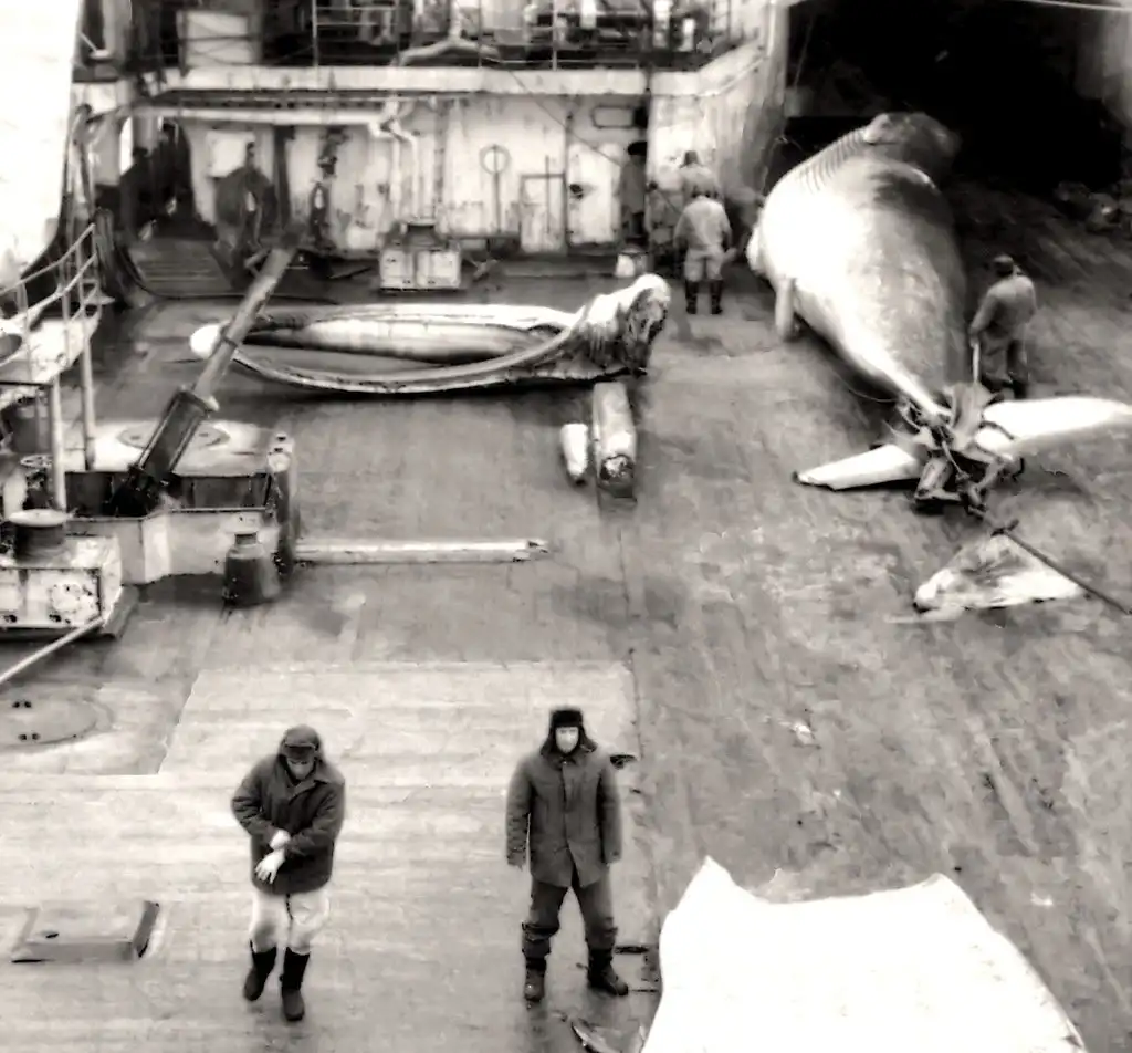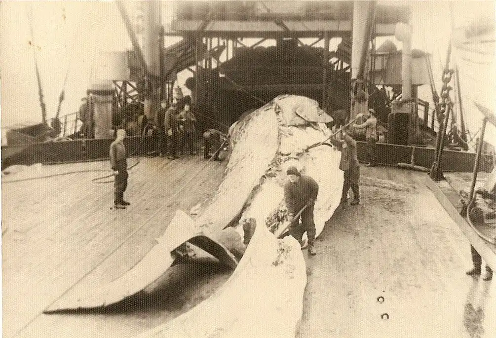 В 1924 году был изобретен слип для вытаскивания убитых китов на палубу плавучих баз. Китобойные флотилии теперь не были привязаны к берегу, и китобойный промысел распространился на все воды Антарктики и на все виды китов.