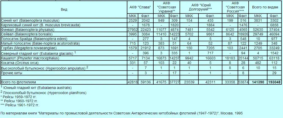 Шли годы. Интенсивность промысла китов, как в водах Антарктики, так и в северной части Тихого океан была очень высокой, особенно со стороны Японии и СССР. Поголовье китов начало резко сокращаться. Если в первые рейсы флотилия "Советская Россия" добывала много гладких китов, голубых (блювалов) и тысячами горбатых, то в последующие годы они добывались единицами, основным китом для промысла стал финвал, а через несколько лет и их поголовье также резко сократилось и основным промысловым китом стал сейвал, а в последующие годы - малый полосатик (минке).