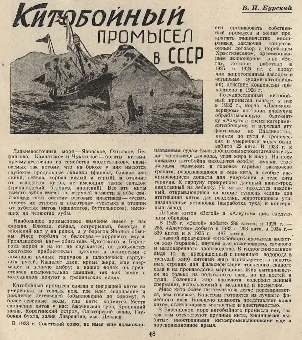 СССР занял 1-е место в мире по добыче китов, на его долю приходилось 43 % их улова (на долю Японии - 41 %).