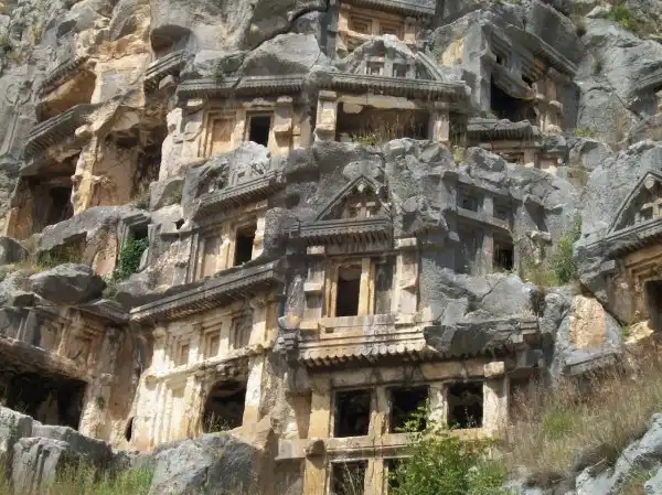 Ликийские гробницы в Мире (Rock-cut tombs in Myra) можно увидеть в древней столице Ликии, которая расположена в 5 километрах от Средиземного моря, на реке Андрак, у устья которой некогда была гавань Андриаке, согласно легенде в этом месте пристал к берегу апостол Павел перед своим отправлением в Рим. На склоне горы, обращенной к морю, которая обрамляет равнину Демре, на северо-западе можно увидеть руины античного акрополя. Стена двухсотметровой высоты, возведена на фундаменте из циклопических камней. При раскопках, обнаруженные записи на ликийском языке, характеризующие область названием «Термилия», указывая таким образом, что история Миры уходит в прошлое на несколько тысяч лет до н.э.