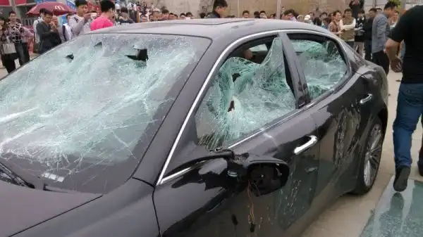 Maserati Quattroporte, стоимость которого эквивалентна 428,000 долларов США, был полностью разбит после того, как владелец по фамилии Ван, нанял трех мужчин, чтобы помочь раздолбать ему автомобиль. Таким образом он выразил протест против плохого обслуживания клиентов в местном дилерском центре Maserati.