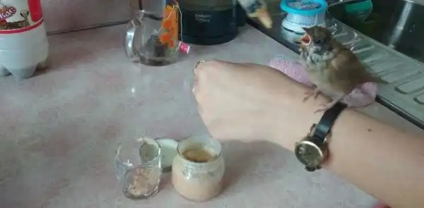 Боже они такие маленькие, лысенькие(Жалко фото не делала с самого начала) Нашла я чашку глубокую, наложила тряпочек, получилось гнездышко^^ отрыла где то корзину от мандаринов, смахивала на клетку(Ночью накрывала чашку этой корзиной, что бы кошка не добралась)Первые дни адаптации были трудные, они не понимали как это кушать со шприца, и пить воду из пипетки, приходилось самой раскрывать клювики, но мы справились..
