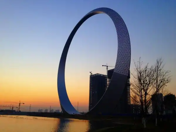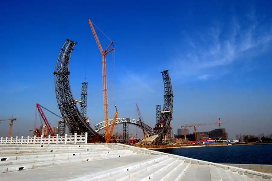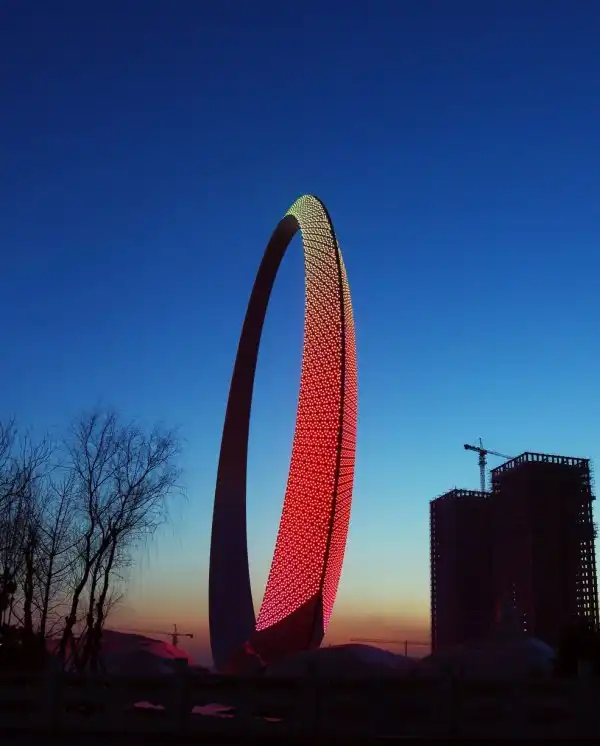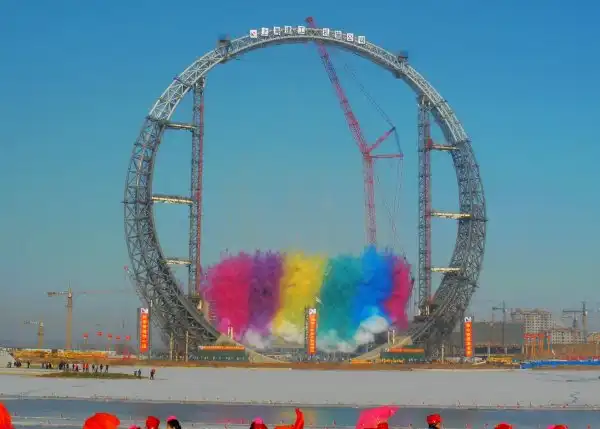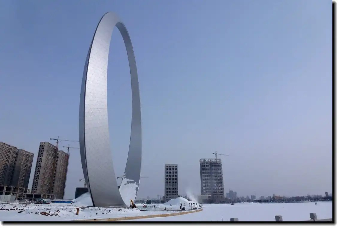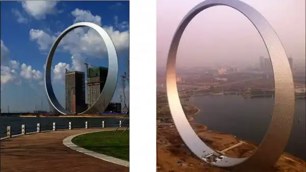Новая достопримечательность строится в северо-восточном городе Фушуне, в китайской провинции Ляонин. Гигантская стальная орбита получила название ‘Кольцо Жизни’. Структура составляет 157 метров в высоту и сделана из 3,000 тонн стали. Ночью она будет светиться с феноменальными 12,000 светодиодами. Проект, как оценивается, стоит 16 миллионов долларов США.