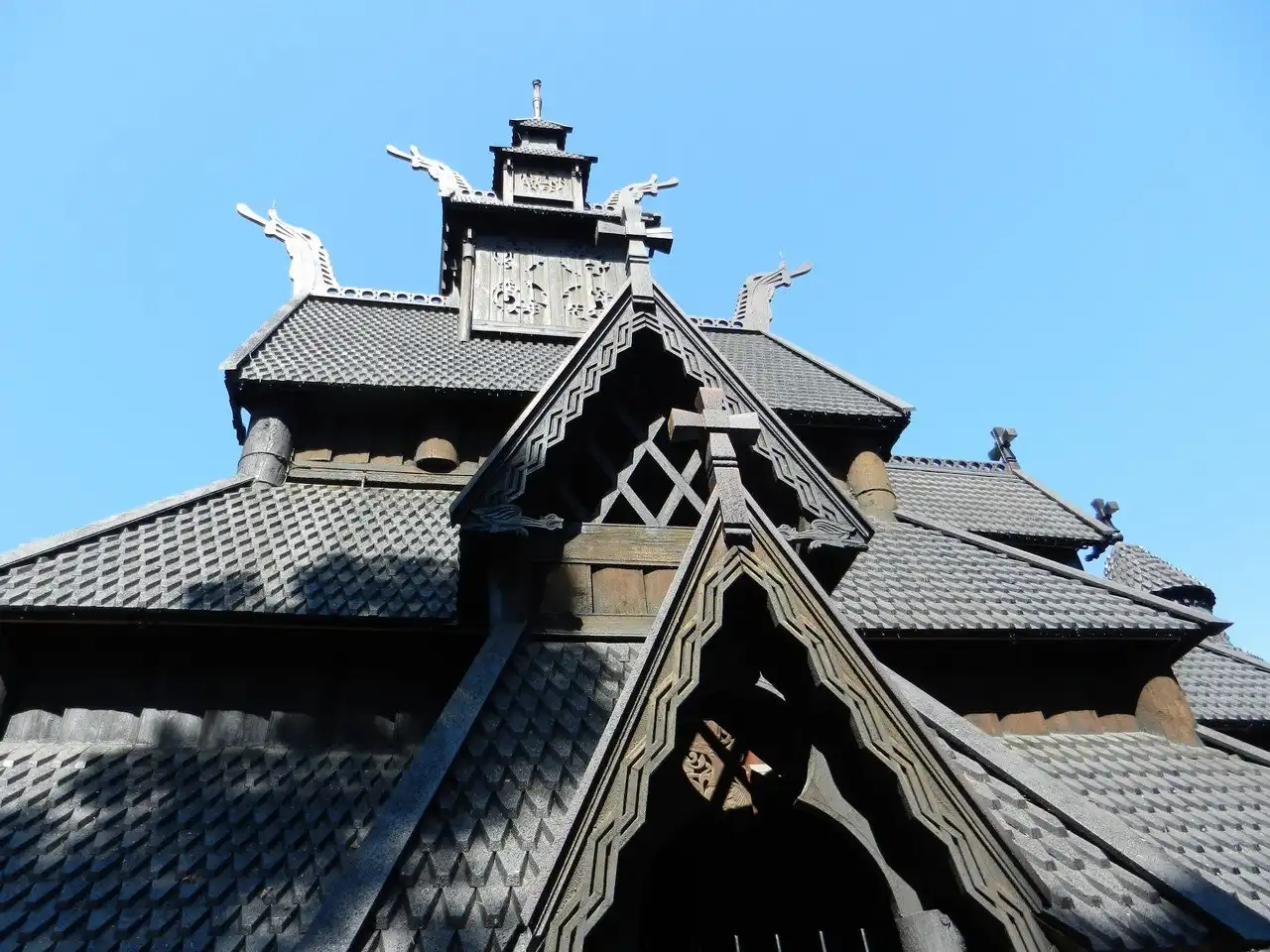 Драконы всегда имели неоднозначное значение в любой мировой культуре. В культуре Норвегии им также отводилось особое место – их считали вестниками больших бед. Поэтому, вполне естественно, что для отпугивания нечистой силы головами мифических существ украшали корабли викингов или крыши домов. Церковь в норвежском Боргунде – одно из таких зданий, чью крышу увенчали головы деревянных чудовищ.