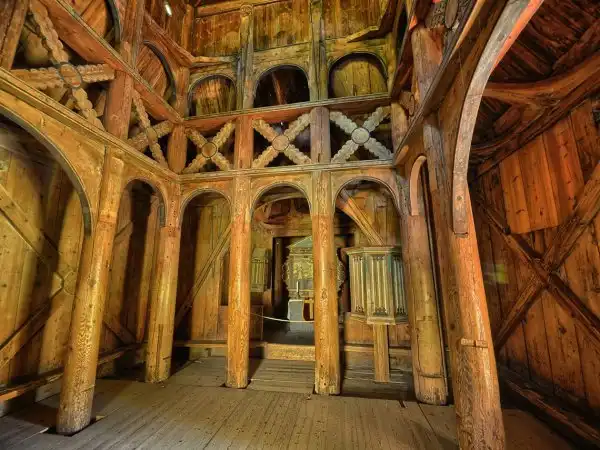 Уникальность ставкирки Боргунд в том, что она сохранилась без существенных изменений как технологических, так и декорационных (кроме, пожалуй, окраски).