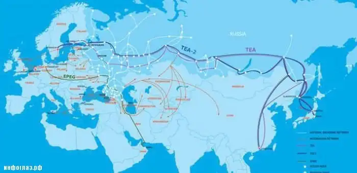 Еще одно название – «Ростелеком», он является ключевым исполнителем нескольких международных проектов, играющих значимую роль в области передачи трафика между государствами Евразии. В частности, компанией запущена система «Транзит Европа-Азия» (TEA) с пропускной способностью до 3,2 Тбит/с. Это надежный, полностью наземный трансконтинентальный маршрут пропуска трафика, альтернативный подводным кабельным системам.