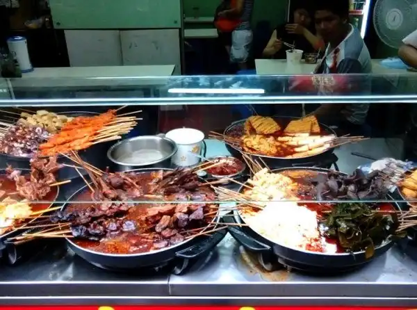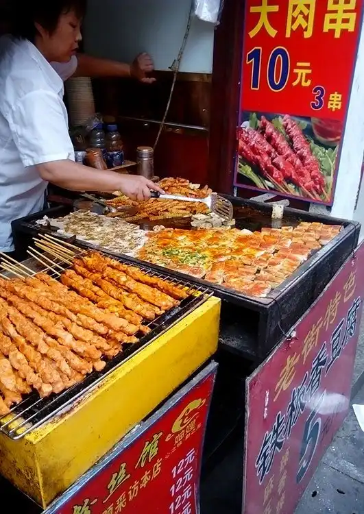Все эти шампуры с гусиными потрохами, тофу, шарики из водорослей и грибов окунают в обжигающе острый пряный суп и едят из бумажных пакетиков.