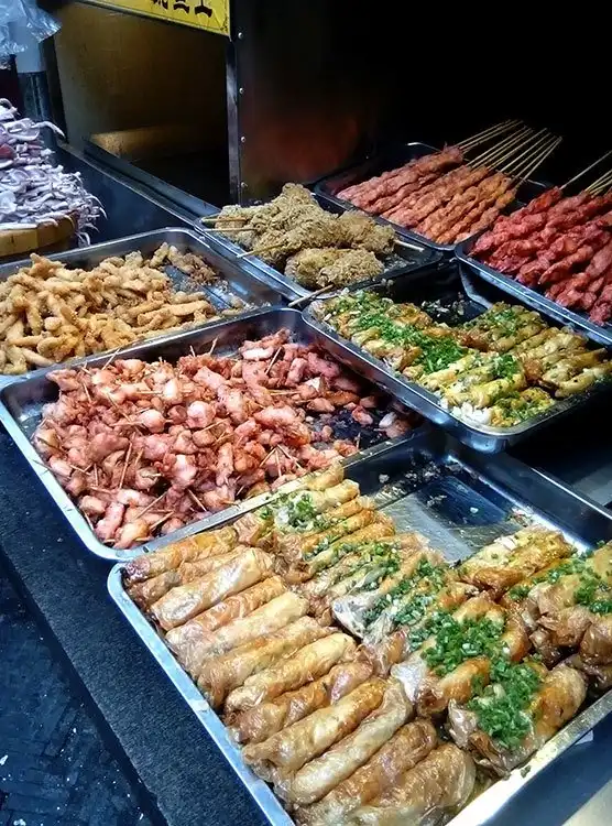 Шампуры с ягнятиной, говядиной, гусиными потрохами и жареным цыпленком, также как и рулеты из «фальшивой» утки – все это сделано исключительно из раскатанного в листы тофу. Вкусно и довольно жирно!