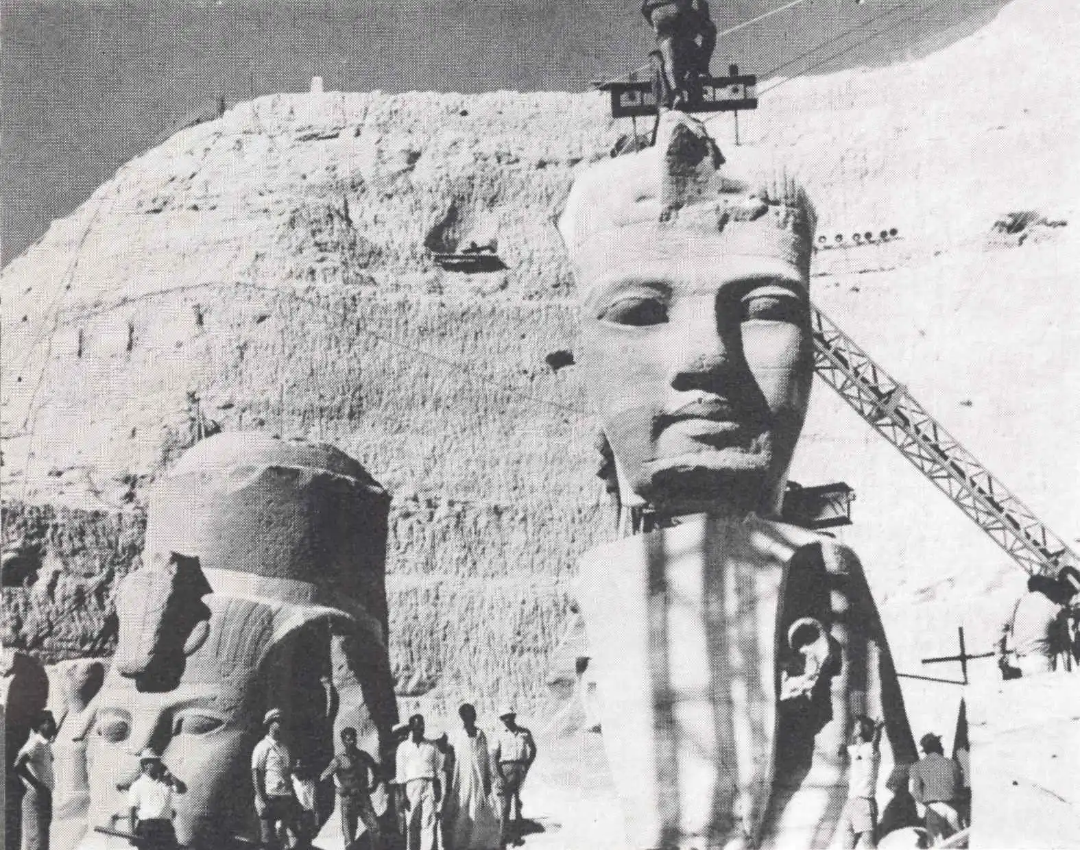 Во избежание затопления культурного наследия было решено разобрать Абу-Симбел по частям и собрать заново в новом месте. Для этого храмы были распилены на 1036 блоков, вес которых достигал от 5 до 20 тонн. Все они были пронумерованы и перевезены на новое место.