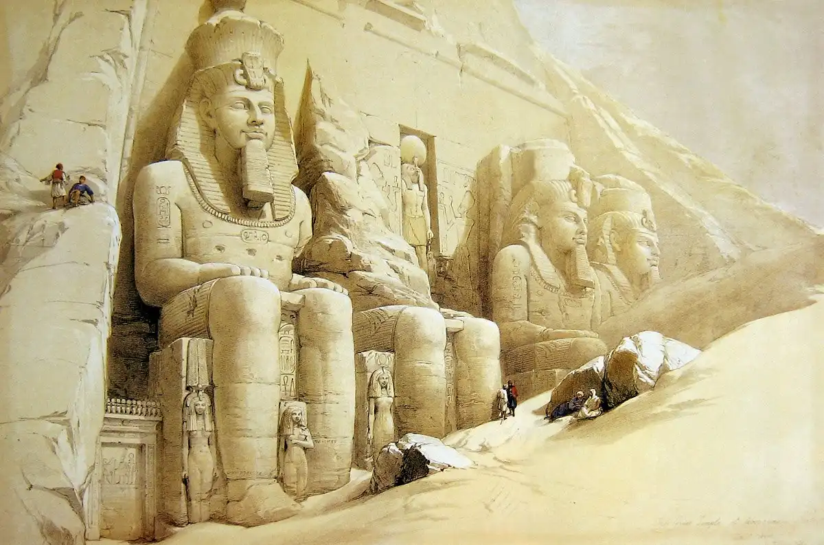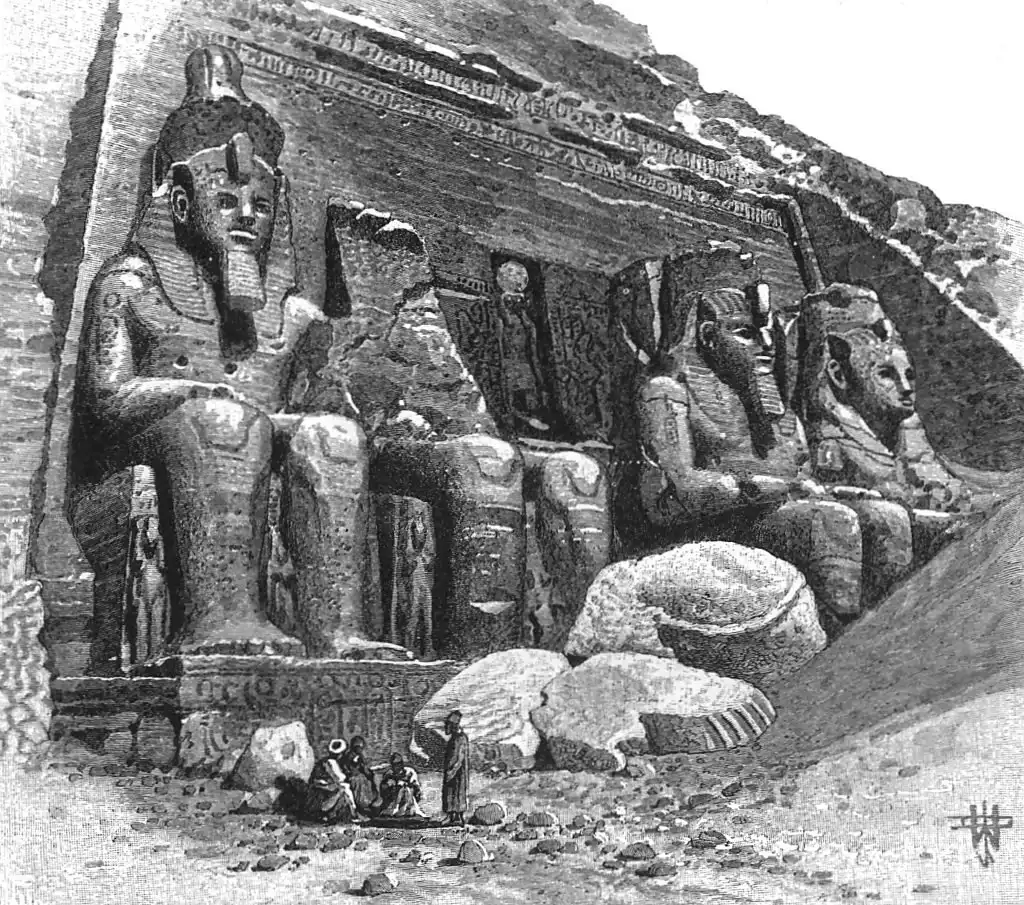Свои впечатления от увиденного историк выразил в своих записях так: “Моему взору открылись статуи вытесанные в скале. Все они были наполовину занесены песком… Однако Рамзес увековечил не только себя, но и свою любимую жену Нефертари. Черты лица его супруги запечатлены на статуях у входа в её храм”.