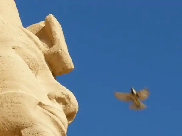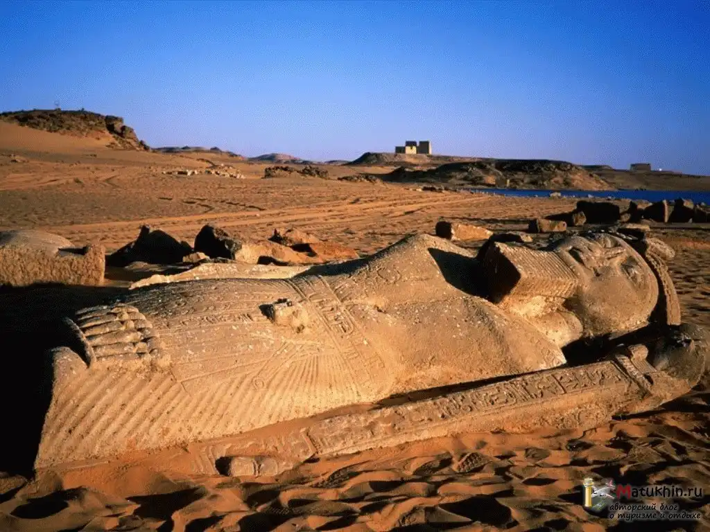 Громадные статуи Рамсеса были издалека видны всем плывущим по Нилу. А когда над горизонтом появлялись первые лучи солнца, колоссы окрашивались в темно-красный цвет, резко выделяясь на фоне иссиня-черных отбрасываемых ими теней.