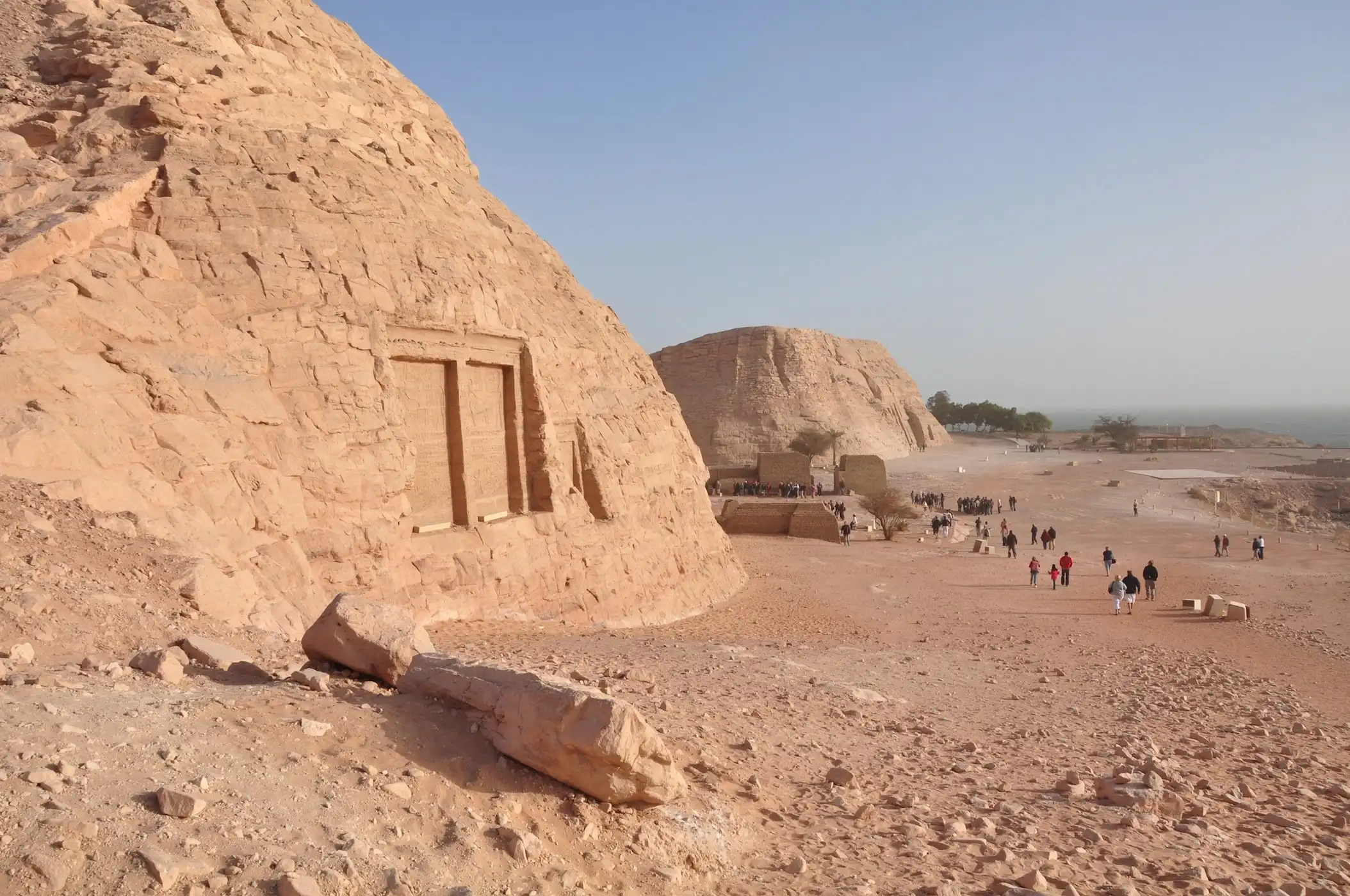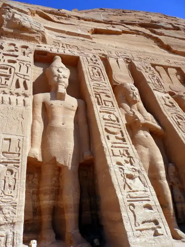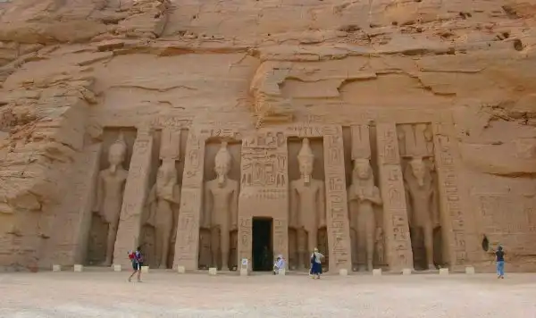 Ансамбль Абу Симбела образуют два сооружения: Большой храм, посвященный фараону Рамсесу II и трем богам: Амону, Ра-Хорахте и Птаху, и Малый храм, воздвигнутый в честь богини Хатор, в образе которой представлена жена Рамсеса II Нефертари-Меренмут.