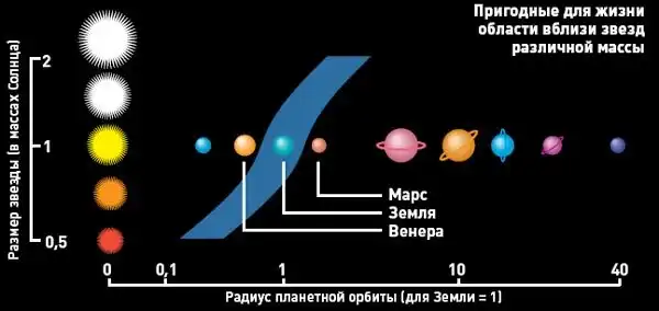 Наибольший интерес, конечно, вызывают те экзопланеты, на которых возможно существование жизни. Чтобы целенаправленно начать искать в космосе «братьев по разуму», надо сначала найти планету с твердой поверхностью, на которой гипотетически они могли бы жить. Вряд ли инопланетяне летают внутри атмосфер газовых гигантов или плавают в глубинах океанов. Кроме твердой поверхности нужны еще и комфортная температура, а также отсутствие вредных излучений, несовместимых с жизнью (по крайней мере, с известными нам формами жизни). Пригодными для обитания считаются такие планеты, где есть вода. Поэтому средняя температура на их поверхности должна быть около 0°С (она может существенно отклоняться от этой величины, но не превышать +100°С). Например, средняя температура на поверхности Земли +15°С, а размах колебаний от –90 до +60°С. Области космоса с условиями, благоприятными для развития жизни в том виде, который известен нам на Земле, астрономы называют «зонами обитания». Планеты земного типа и их спутники, находящиеся в таких зонах, — это наиболее вероятные места проявления внеземных форм жизни. Возникновение благоприятных условий возможно в тех случаях, когда планета располагается сразу в двух зонах обитания — в околозвездной и галактической.
