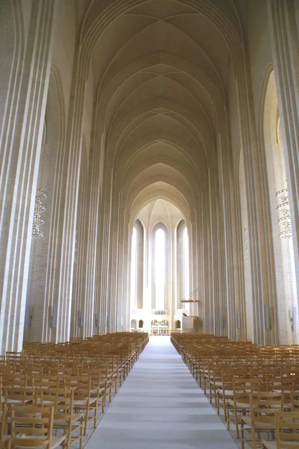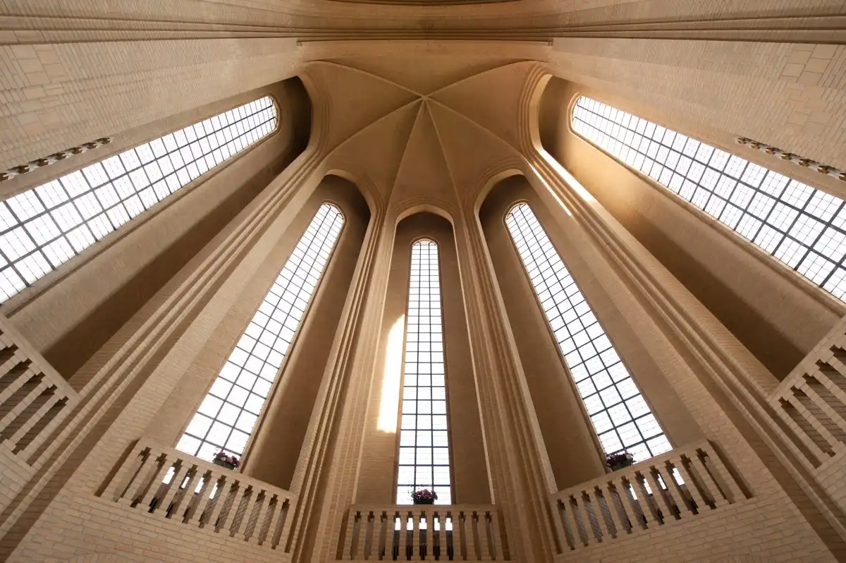 Колокольня церкви имеет 49-метровую высоту, а многочисленные вертикали фасада создают ощущения взлета в поднебесье. Для постройки храмового ансамбля было использовано около 6 миллионов желтых кирпичей – типичного для Дании строительного материала ручной выделки. Церковь Грундтвига открыта для посещений круглый год, а большой церковный орган – самый длинный в Скандинавии, – чьи линии так схожи с вертикалями фасада храма, постоянно участвует в проведении концертов и музыкальных фестивалей.