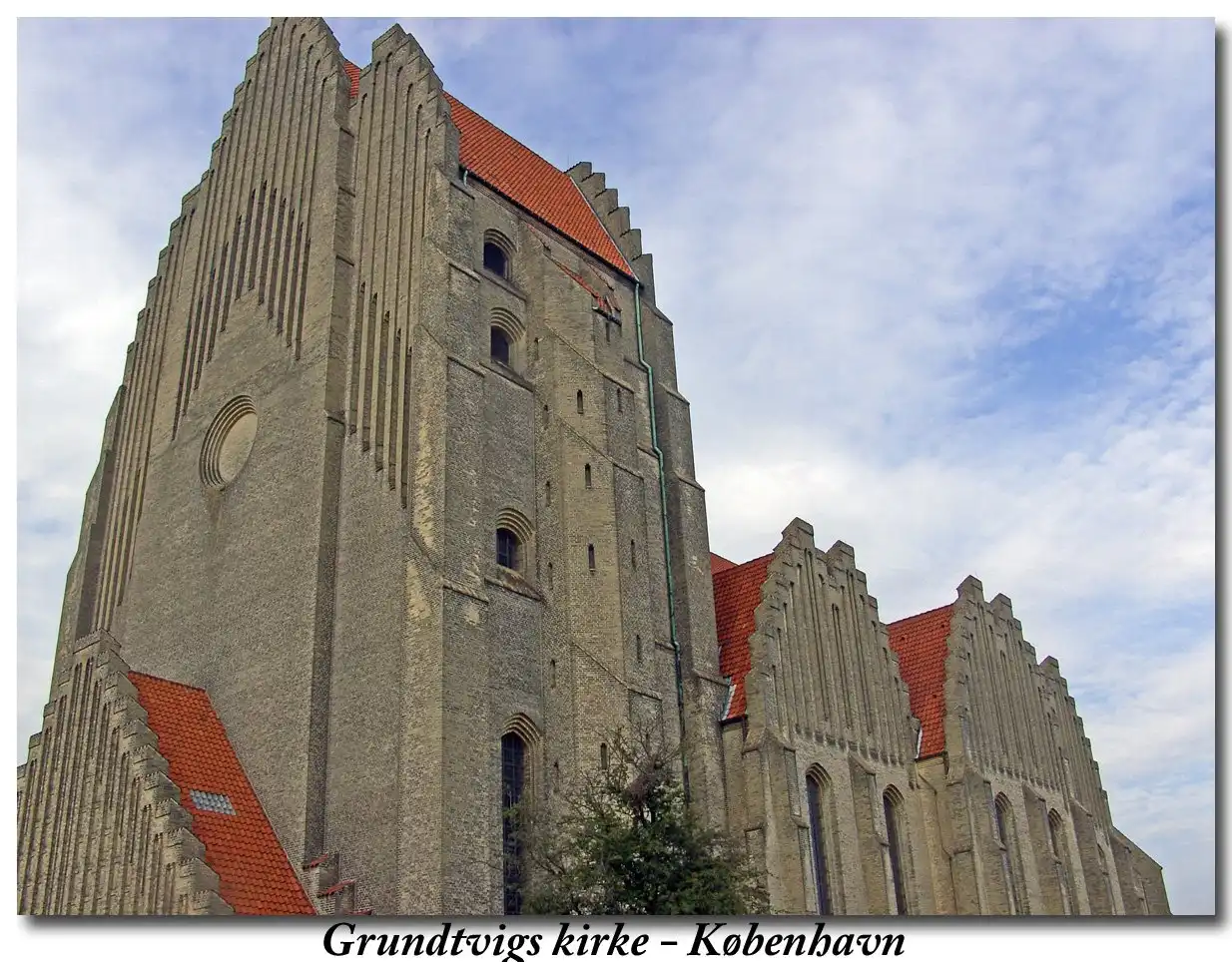 В основу своего проекта Енсен-Клинт положил образ средневековых датских приходских церквей, трактованный в духе национального романтизма начала ХХ века. Главный фасад этого трехнефного храма одновременно представляет собой башню высотой 48,5 м, чрезвычайно величественную, украшенную изящным декором, контрастирующим со спокойной гладью могучих стен. Здание сложено из желтого кирпича ручной выделки и отличается высоким качеством кладки.