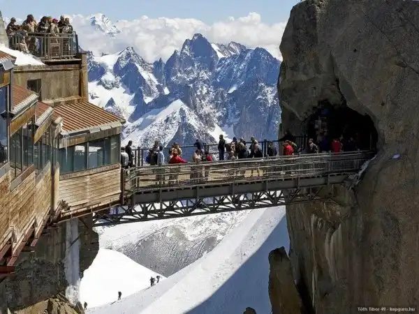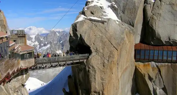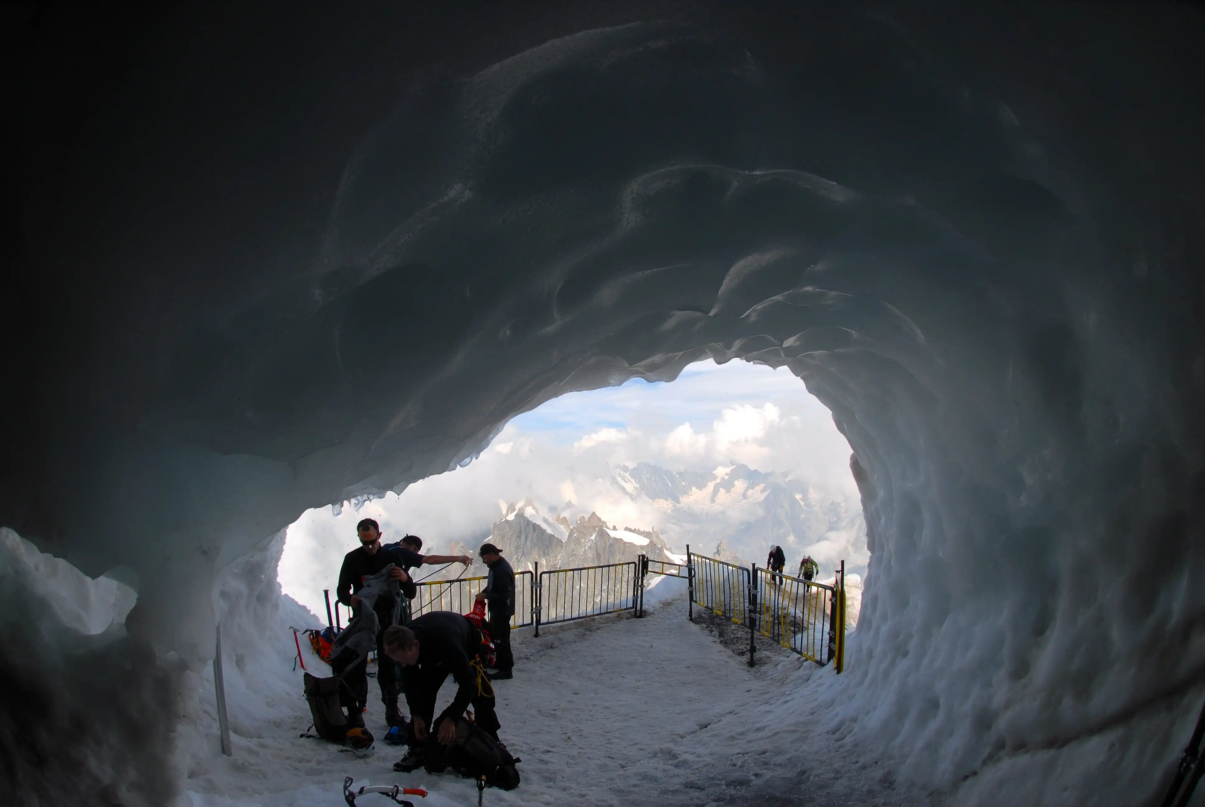 В зависимости от того, какое время года стоит на дворе, на легендарную станцию Агюль-дю-Миди — одну из самых высокогорных канатных дорог в мире, ежедневно поднимается от двух до пяти тысяч зевак, альпинистов, лыжников, сноубордистов, парапланеристов и прочих сумасшедших. Для одних отсюда открывается дорога в рай (читай, знаменитый внетрассовый спуск по «Белой Долине», восхождение на высочайшую вершину Европы Монблан или несколько фантастических минут парения над долиной Шамони). Для других — только необыкновенная панорама Альп, на которую не жалко и тысячи кадров. А кого-то в этом заоблачном горном «храме» на высоте 3842 метра над уровнем моря после 10 минут переходов с уровня на уровень, от одной смотровой к другой начинает с непривычки пошатывать и подташнивать, и они просятся обратно вниз. Равнодушным это место не оставляет никого.