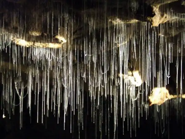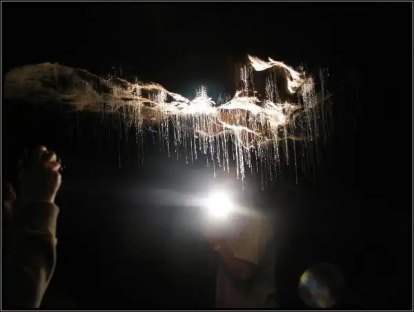 Таким образом, говорят исследователи, личинки завлекают насекомых в свои ловушки — нити из шёлка, которые эта мелочь прядёт, развешивает под потолком и заставляет свисать. На самом деле другие исследователи установили, что удивительные светлячки вполне могут обходиться и без насекомых, а с удовольствием питаться спорами грибов, которые никуда не надо завлекать. Кроме того, тысячи светящихся от голода личиночьих желудочков способны «выключаться», испугавшись приближения любопытствующих туристов. Так что чудесная иллюминация в пещерной тьме — это просто стремление крошечных существ к красоте и совершенству. Этим Пещерам, как полагают некоторые ученые, более чем два миллиона лет.