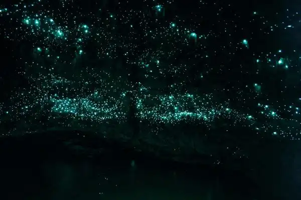 Итак, в пещеры Вайтомо туристы приходят, чтобы увидеть… звёздное небо. Именно так выглядят потолки пещеры с личинками светлячков Arachnocampa luminosa, которые, по утверждению учёных, светятся преимущественно от голода. Причём чем острее голод — тем ярче свечение.
