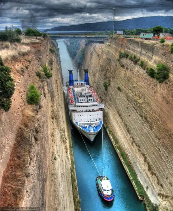 В средиземноморской Греции имеется необыкновенный канал. Он не может соперничать с большими каналами североевропейских стран или со знаменитым Суэцким каналом в Египте. И все же этот греческий канал уникален. Он соединяет Саронский залив Эгейского моря с Коринфским заливом, который имеет выход к Адриатическому морю и к портам других европейских стран. Поэтому он имеет чрезвычайное значение для греческой экономики.