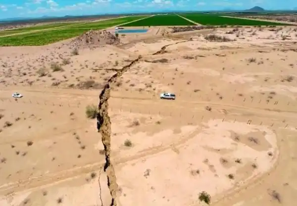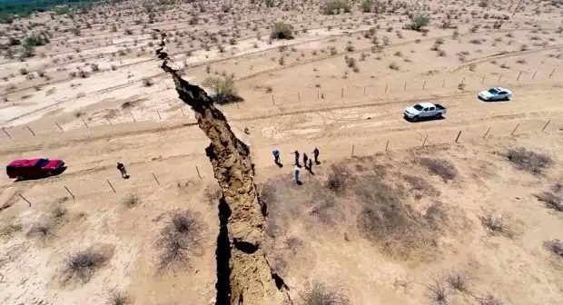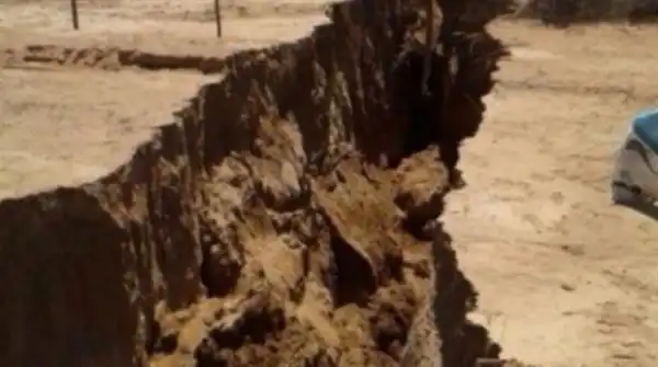 Трещина в земле, которая появилась в Мексике простирается на восемь метров. Аномальный разлом, шириной в пять метров, появился на одной из крупных автострад и остановил поток автомобилей. Движение по шоссе, ведущее от города Эрмосильо к побережью полностью остановлено.