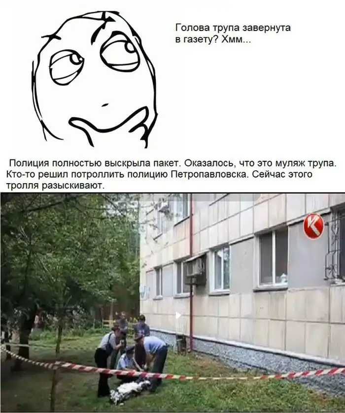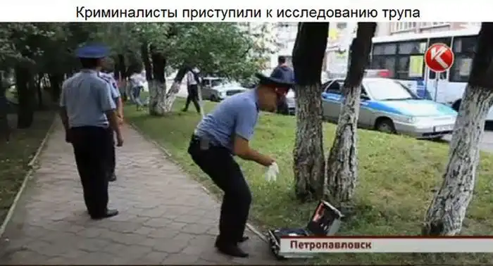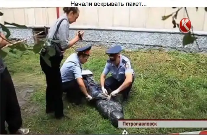 После того, как обычные жильцы многоэтажного дома в Петропавловске обнаружили во дворе предмет, который своими очертаниями был очень похож на человеческое тело, завернутое в черный целлофан, оно сразу же позвонили в местное отделение полиции и сообщили о найденном трупе. Полиция прибыла по вызову всего через несколько минут, а чуть позже подоспели криминалисты для исследовательская трупа.