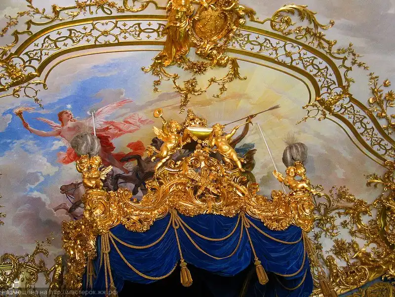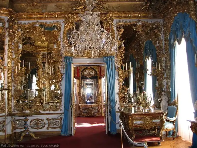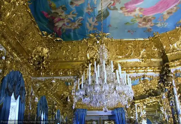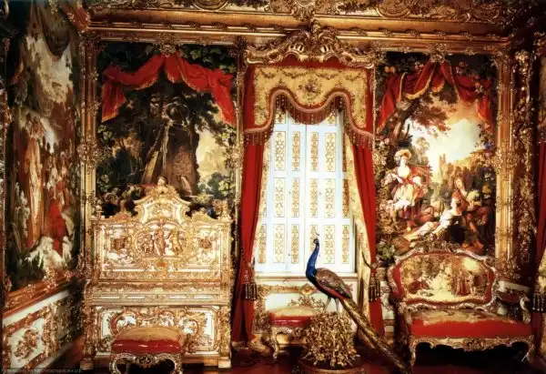 Великолепие барокко и роскошь роккоко в мраморе, картинах и гобеленах в сочетании с избытком позолоты и зеркал, оптически увеличивающих размеры помещений, ошеломляет своей пышностью. Здесь всего слишком: слишком много позолоты, слишком много росписи, вышивок и гобеленов, зеркал и прочих красивостей для невзыскательного глаза неискушенного зрителя.