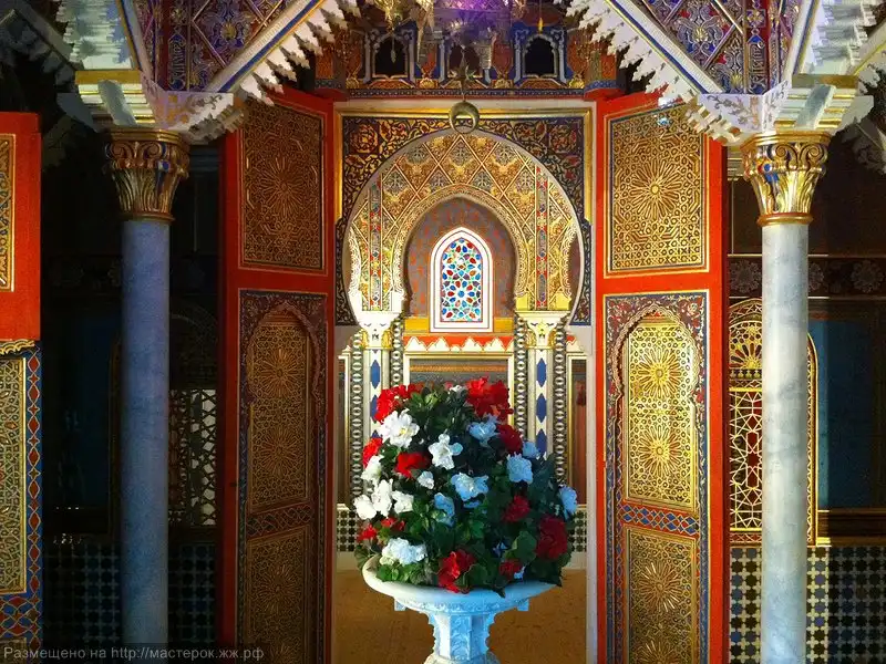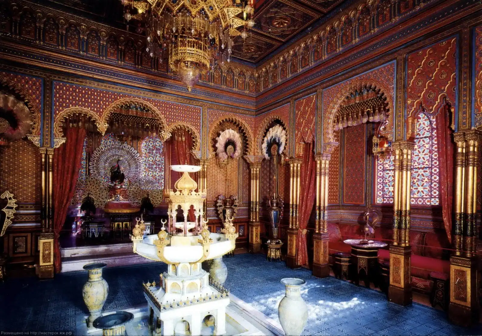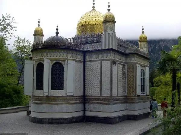 Увлечение Людвига восточным миром проявилось в Мавританском павильоне с Павлиньим троном и Марокканском доме, купленном на выставке в Вене.