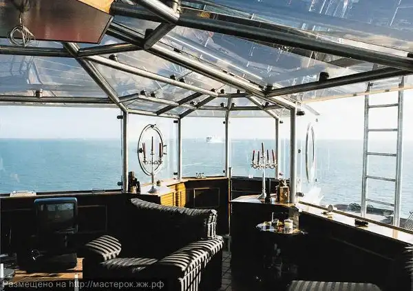 360-градусным обзором. В самом здании — три этажа, по центру объединённые атриумом со стеклянной крышей. На крыше находится сад камней, выполнен ландшафтный дизайн территории. Помимо бывших гостиничных номеров есть помещения общего назначения — развлекательные зоны, административные территории, крытый бассейн, тренажёрный зал. Все необходимые коммуникации находятся в рабочем состоянии. На крыше оборудованы две вертолётные площадки. Также получено разрешение на строительство причала на 40 лодок. Общая площадь форта почти 0,5 га.