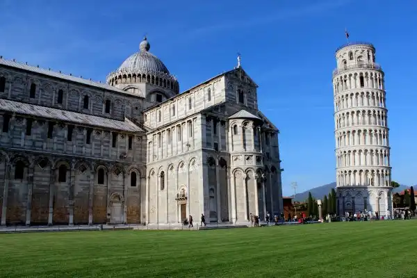 В 1738 г. Пизанская область отошла к Лотарингии. В 1860 г. Пизу присоединили к итальянскому королевству. Необычная история Пизы, обширные торговые связи города, в том числе со странами Востока (см. Запад и Восток), послужили причиной того, что в XI—XIII вв. (период наивысшего могущества Пизанской республики) в Пизе сложился уникальный архитектурный стиль, который именуют романо-пизанским. В северной части города, на обширном зеленом лугу — теперь его называют Пьяцца деи Мираколи (итал. Piazza dei Miracoli — "Площадь чудес")1 — одно за другим возводили удивительные здания: собор, баптистерий, кампанилу.