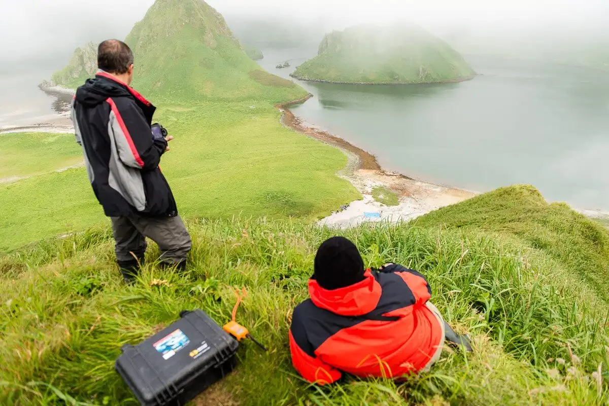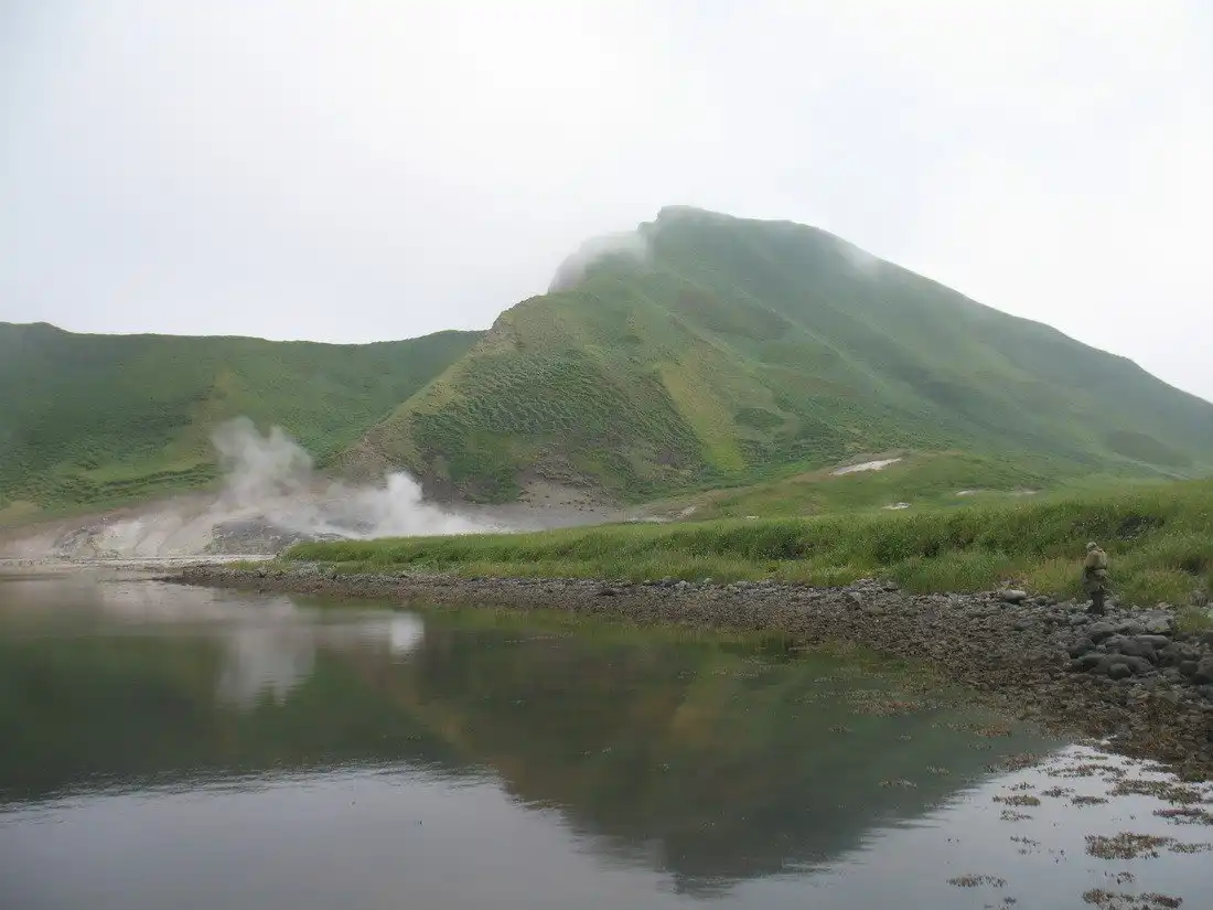 Это старый вулкан с кальдерой, разрушенной до уровня моря. Вулкан-залив. Место для визуального медитирования – край кальдеры. Вид открывается на три стороны – залив внутри и на почти отвесные скалы и морской прибой Тихого океана и Охотского моря снаружи.