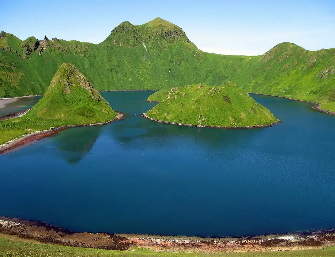 Некоторые ключи, видимо, относятся к гайзерам, так как выбрасывают пар не постоянно. Щебнистые маломощные почвогрунты имеются только на северном острове; отдельными пятнами они залегают на южном острове и на скале Бабу.