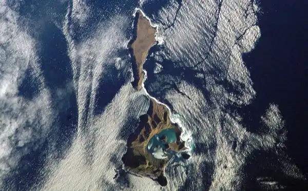 На юго-восточной стороне «хребта», на внешнем подводном склоне, до 125 м высоты возвышается куполообразная скала Бабу (Бабушкина, Бабушка). Плоская скала Энцио (Колпак) вблизи западного выступа острова, в 180 м от внешнего берега поднимается на 37 м. Обе скалы, видимо, паразитические конусы. Все эти части вулканического массива соединены каменистыми рифами. На обоих островах нет пресной воды, но много горячих источников. Горячие ключи «…кипят и серы горючей имеют довольно, и когда в ночное время молодые топорки через ключи летят в море, то от горячести их и ют серного запаха падают в них и изопревают вскоре и остается одно их перье…», от серы «воздух под ними заражается, а из-под земли бывает безмерный жар с великим звуком» (Полонский, стр. 433).