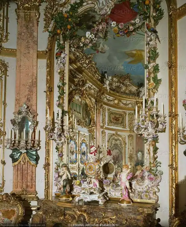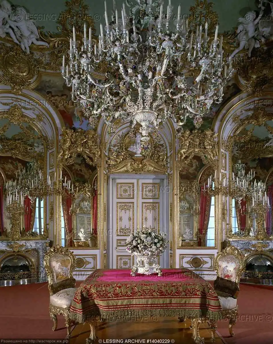 Все помещения расписаны золотом, огромные люстры и канделябры, драгоценный мейсенский фарфор создают невероятную роскошь и великолепие.