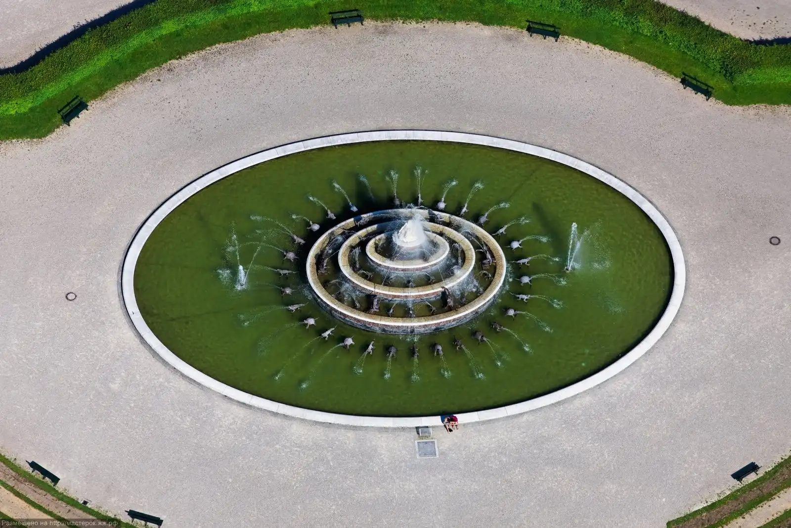 Работа над образом парка могла быть начата в 1882 году, после того как был заложен фундамент дворца в 1878 году. Очень важно было учесть дизайн центральной оси сада, которая составляла 1/3 всего общего объема сада. К смерти короля строительство грандиозного парка было завершено, не считая фонтана Аполлона.