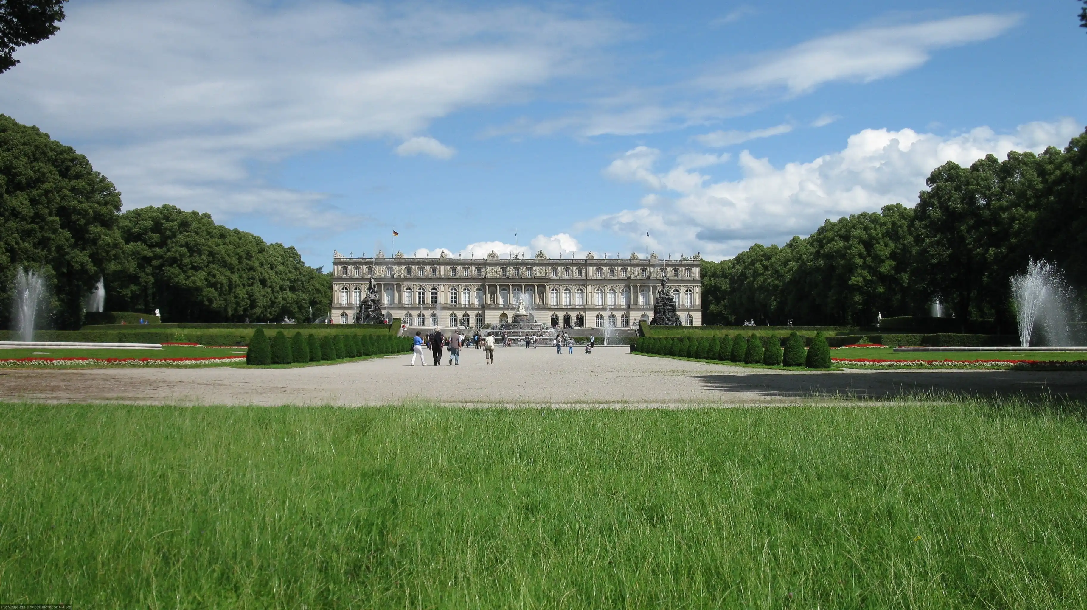 Воздвигнутый на острове площадью в 230 гектаров посреди озера Кимзее, замок Herrenchiemsee по замыслу Людвига II должен был стать храмом славы и памяти Людовика ХIV. За время своих двух поездок в Париж в 1867 и 1874 годах, Людвиг II в деталях изучил строительный стиль «Короля-Солнце». По замыслу баварского монарха здесь, на острове Херренверт, в центре озера Кимзее, должен был возникнуть «Новый Версаль». Добавим, что это ему вполне удалось: замок-дворец на озере Кимзее не только сумел стать «новым Версалем», но по богатству, вкусу и изяществу с легкостью «обошел» свой французский оригинал.