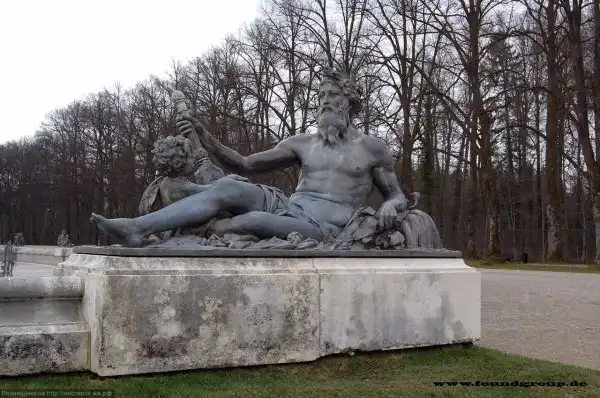 Особую роскошь и импозантность можно наблюдать в покоях короля и Зеркальном зале — центр дворца. Что касается придворных садов спланированных под руководством Карла фон Эффнера, их центральная ось является полной копией садов в Версале. В том числе и водный партер на западной стороне, состоящий из двух бассейнов, увенчанные статуями Славы и Фортуны по желанию Людвига II. Король создать мифологический эффект, в зеркальном отражение фонтана Аполлон виднелся цветочный партер с фонтаном «Лет» и «Гранд Канал».