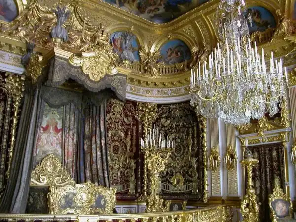Образ Людовика ХIV, «Короля-Солнце», отчетливо просматривается и во второй прихожей, которую из-за окон овальной формы называют «Залом бычьего глаза». Поражает своей роскошью парадная королевская опочивальня. Согласно этикету тех времен, эти апартаменты являлись местом утренних и вечерних аудиенций. По изобилию и богатству отделки королевская спальня дворца Herrenchiemsee превосходит свой версальский подлинник. Господствующее место в комнате занимает роскошная кровать размером 3 на 2,6 метра.