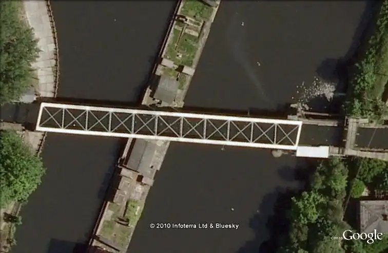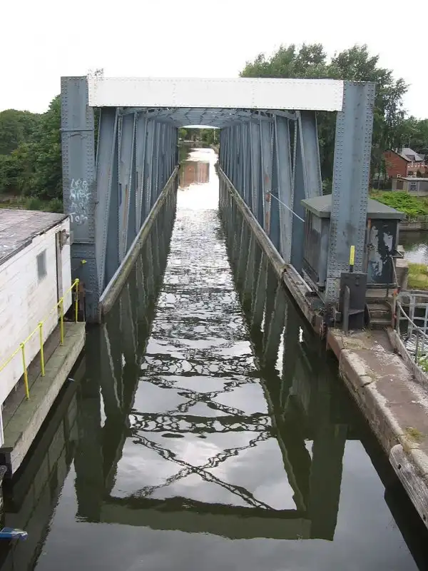 Шлюзы на обоих концах моста сдерживают около 800 тонн воды. Такой же поворотный мост, но предназначенный для дорожного движения, расположен здесь же, чуть выше по течению.