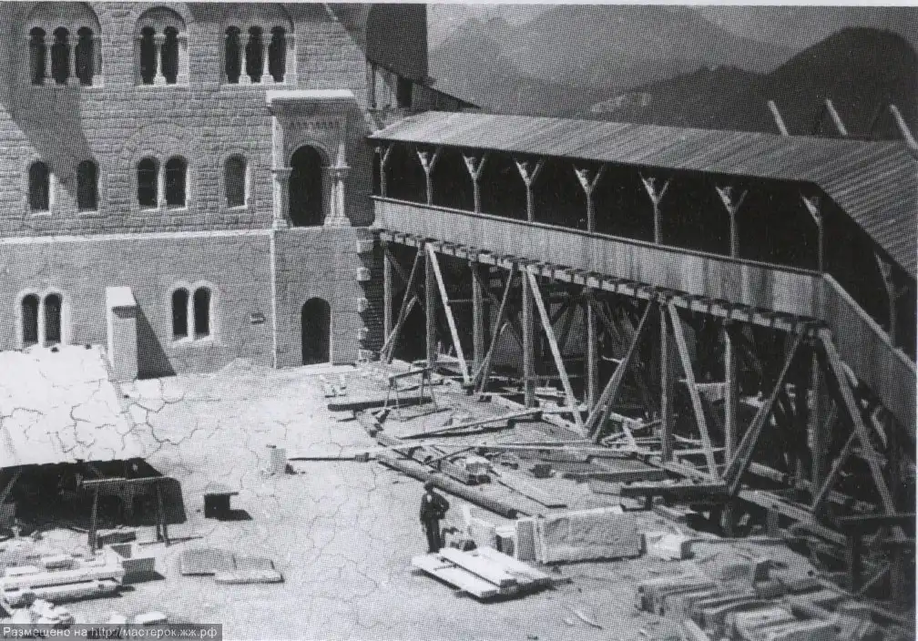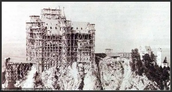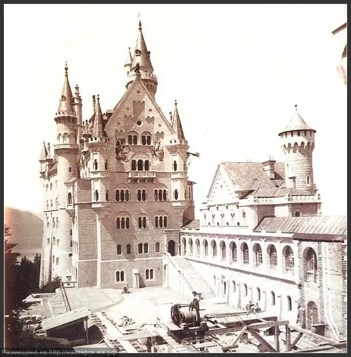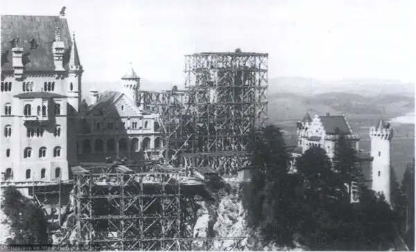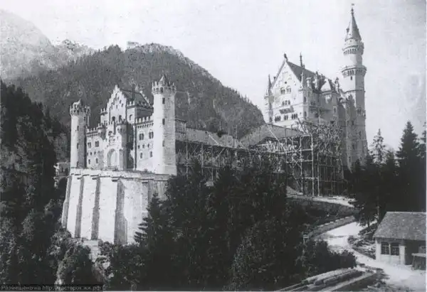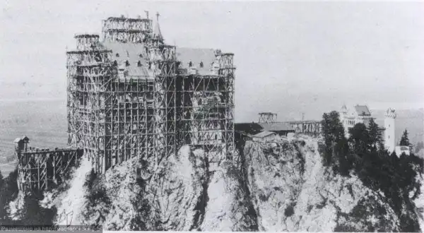 Король с юношеской страстью целиком и полностью отдался строительству. Несмотря на это, возведение замка продвигалось далеко не с такой скоростью, как виделось баварскому мечтателю. Дело в том, что соорудить в гористой альпийской местности столь сложное в архитектурном и коммуникационном плане строение являлось весьма непростой задачей. Люди трудились день и ночь, но все равно не успевали за полетом фантазии правителя, который, к тому же, постоянно пересматривал проект, в угоду вновь посетившим его видениям. В результате, например, достаточно скромное помещение для приемов, превратилось в помпезный Тронный зал.